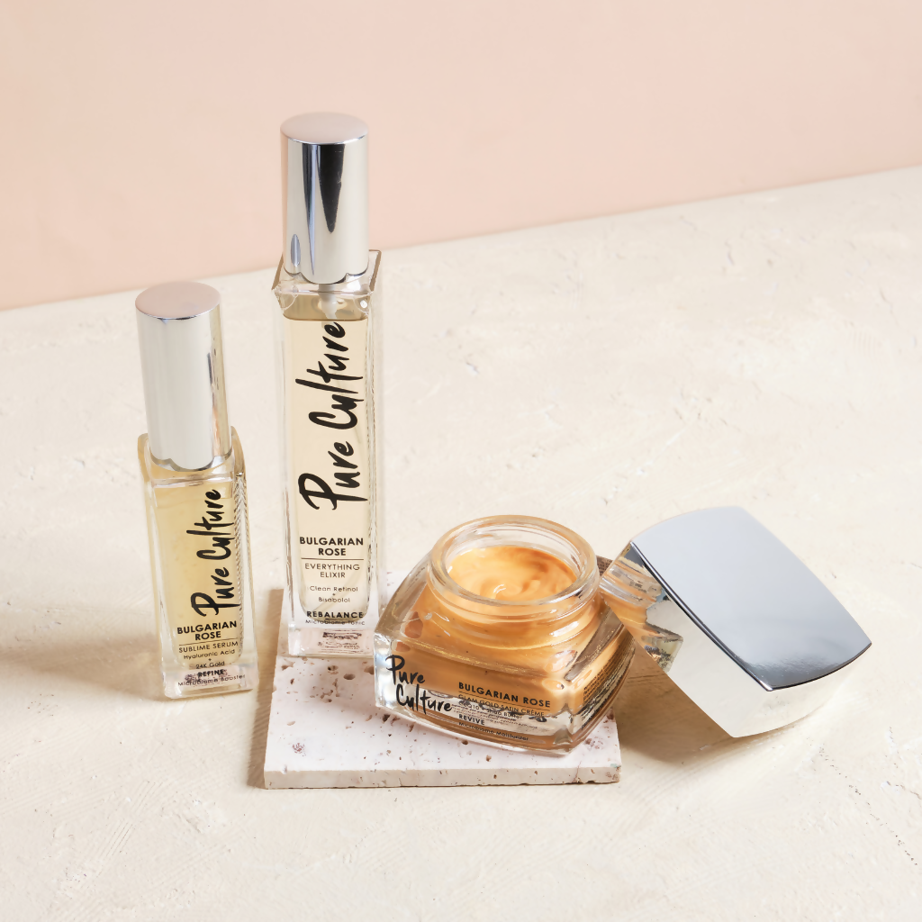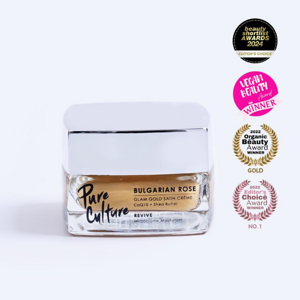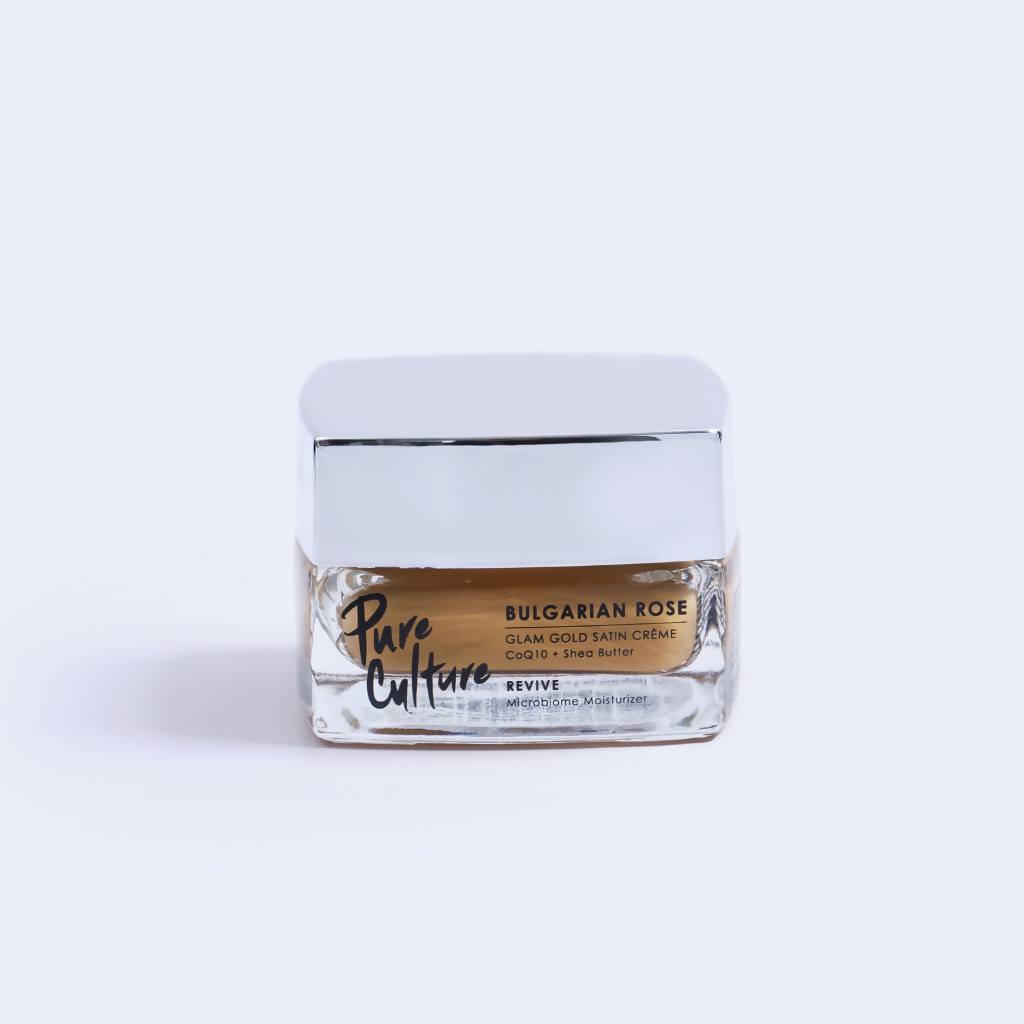 Want to smile inside and out every single night? Put on Bulgarian Rose Glam Gold Satin Crème before bed! This 24k gold night cream resets and renews skin from daily aggressors and works overtime to plump, protect and promote skin well-aging for the most luxurious recovery sleep.