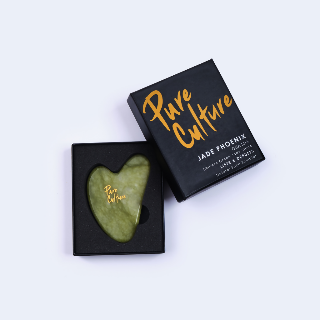 The Phoenix Jade Gua Sha is a depuffing, lifting and firming self-care tool that enhances circulation, lymphatic drainage and and a natural glow.