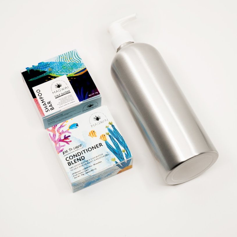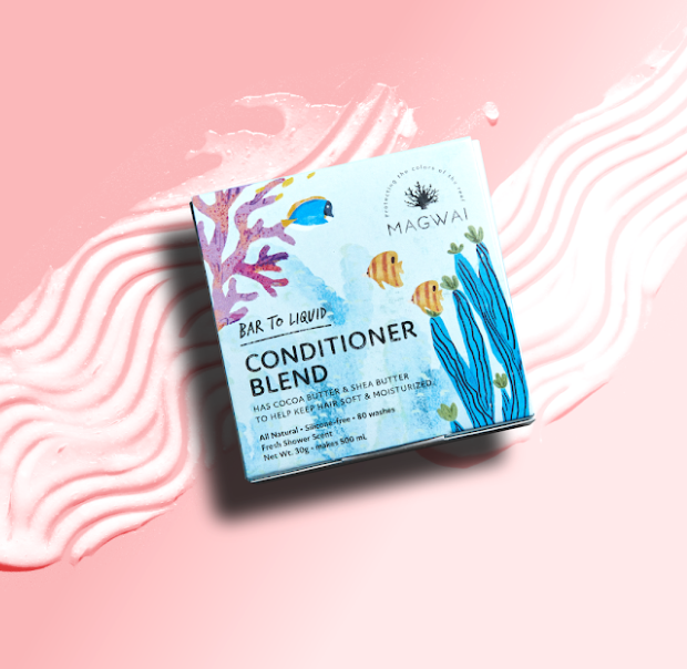 MAGWAI Conditioner Blend is the country's first bar-to-liquid conditioner that keeps your hair silky smooth and the ocean plastic-free. It delivers on the plastic-free promise while providing the creamy conditioner texture that you love and are familiar with.